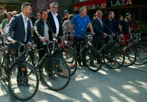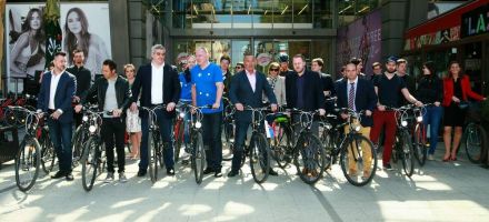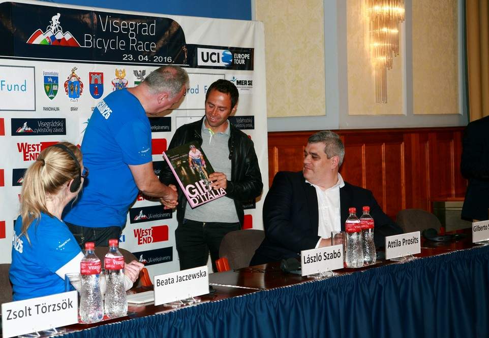 Április 21-én került sor a V4 Nemzetközi Kerékpárverseny első, magyarországi etapjának sajtótájékoztatójára, amelyen többek között részt vett a verseny egyik díszvendége, Gilberto Simoni is. A sajtótájékoztatón történteket Varga Tamás örökítette meg.
